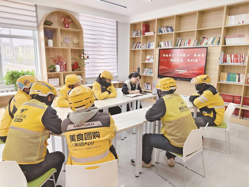 在海南区拉僧仲街道金海社区德顺家苑暖“新”驿站,“新业态新就业群体红色孵化中心”的醒目字样,照亮了“两新”群体的成长之路。这里不仅配备了充电器、饮水机、应急药箱等基础便民设施,更精心打造了党建书吧,为他们搭建起阅读学习的静谧港湾;开辟政策宣传角,定期开展权益保障培训,切实提升“两新”群体的权益保护意识;设立“先锋骑手”积分兑换角,以正向激励点燃大家参与社区治理的热情,增强他们的归属感与责任感。