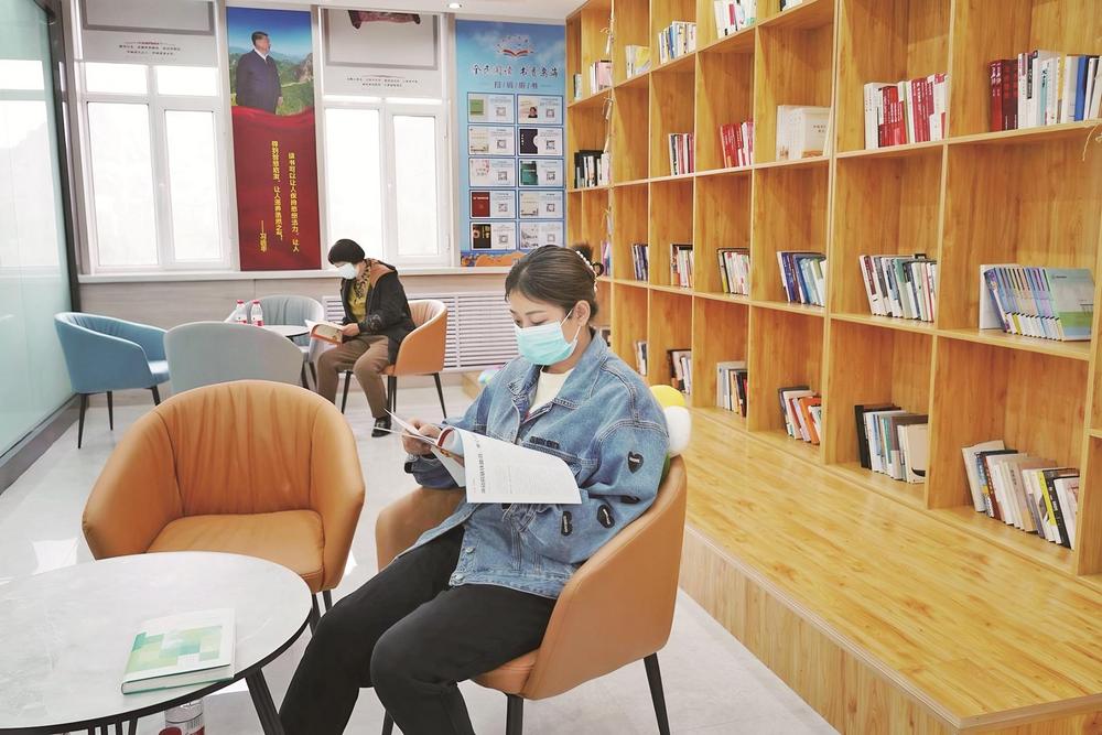 居民在红色驿站阅读书籍。