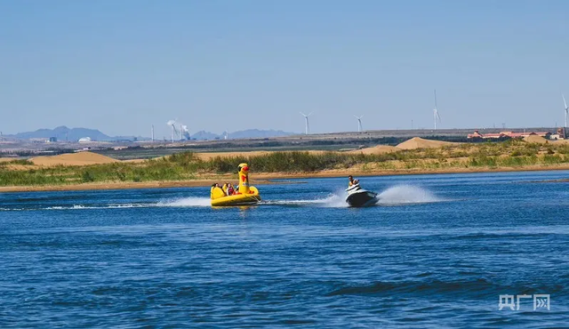 清晨的阳光洒在乌兰布和沙漠边缘,金色的沙丘环抱着碧波万顷的乌海湖,水沙相映,构成一幅震撼心灵的天然画卷。湖面上,几艘快艇划开平静的水面,载着游客的惊呼与欢笑,从清澈的水域穿过两侧高耸的沙山,实现“水陆两栖”的独特穿越。