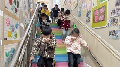 上午9:50,随着模拟火灾警报声响起,演练正式开始。全体教师迅速到岗,引导幼儿用湿毛巾捂住口鼻,弯腰低姿,沿着安全疏散路线快速、有序地撤离到操场安全区域。整个过程紧张有序,用时仅1分15秒,所有幼儿和教职工全部安全疏散完毕。