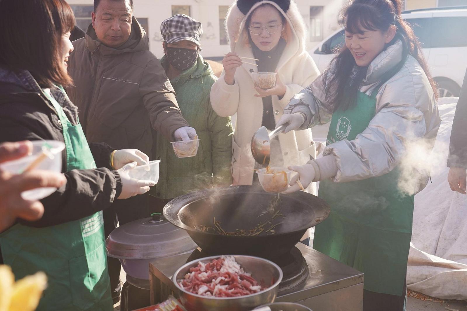 热闹的村厨大赛免费吃活动。