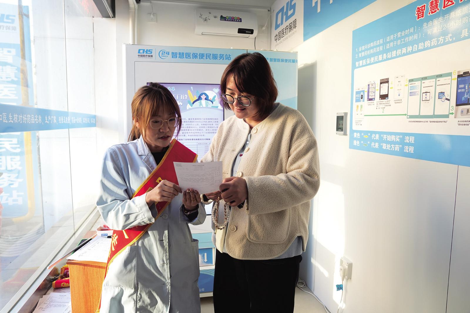 振华社区卫生服务中心医保科负责人李晶详细介绍了驿站的服务流程。她说:“为保障用药安全,患者需自助上传首诊处方完成复诊电子处方开具。凭此电子处方,即可在驿站完成购药与医保结算。”她补充说明,驿站提供约80种药品,涵盖常见病、多发病、慢性病及季节性流感等常用药,可满足周边4万余名居民的日常用药需求。驿站支持24小时服务,居民不出社区就能完成医保门诊统筹结算,极大提升了购药便利性。
