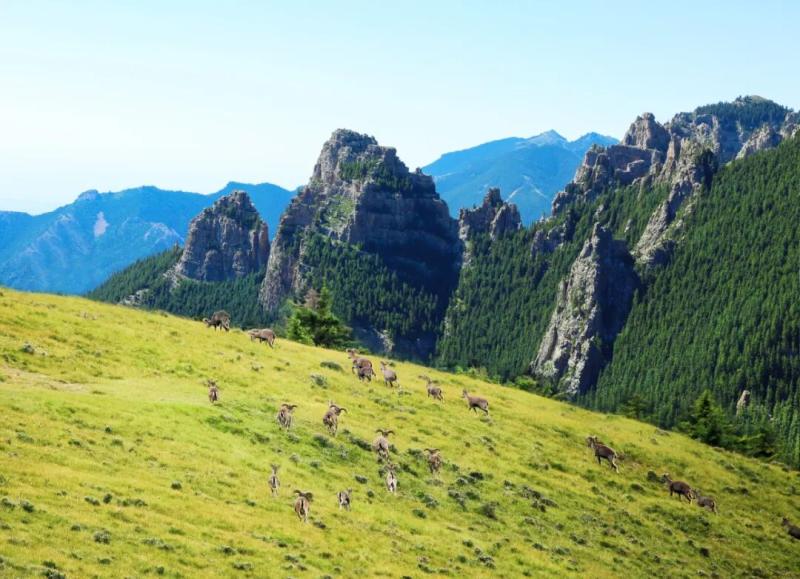 最新监测数据显示:保护区成立以来, 森林面积由32.14万亩增至58.2万亩,森林覆盖率从31.6%跃升至57.3%,林草植被总盖度达80%。 野生动物种群持续恢复,马鹿从2000余头增至7000余头,岩羊从1.6 万只增至5万余只。