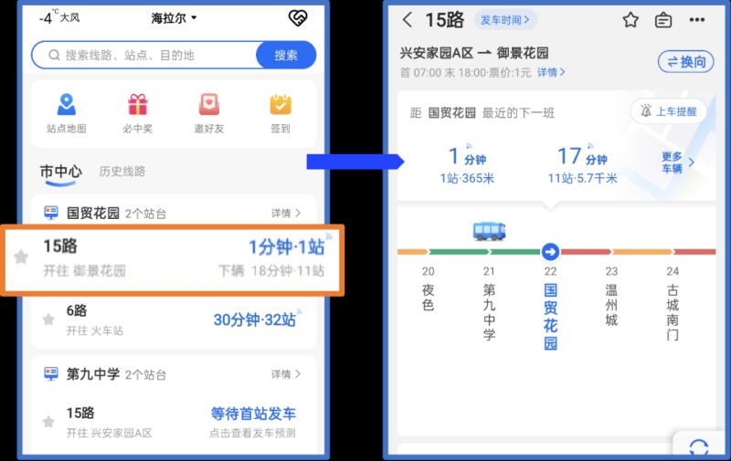 海拉尔公交与深耕出行服务多年的车来了APP携手升级,这款官方推荐的出行助手,直接把公交服务的便捷度拉满。打开APP就能实时查看公交车精准位置和到站时间,误差控制在分钟级,出门前掐好点,再也不用在严寒中漫长等待。