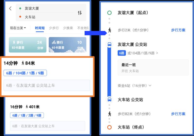 在主页的搜索栏中输入目的地,系统将自动规划最优方案,多种选择任您挑选。