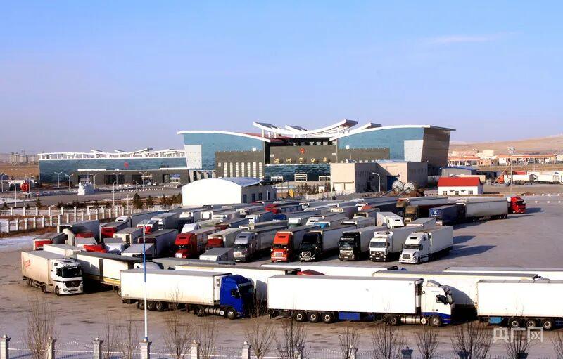 满洲里公路口岸货车等待进出境(央广网发 张鹏 摄)