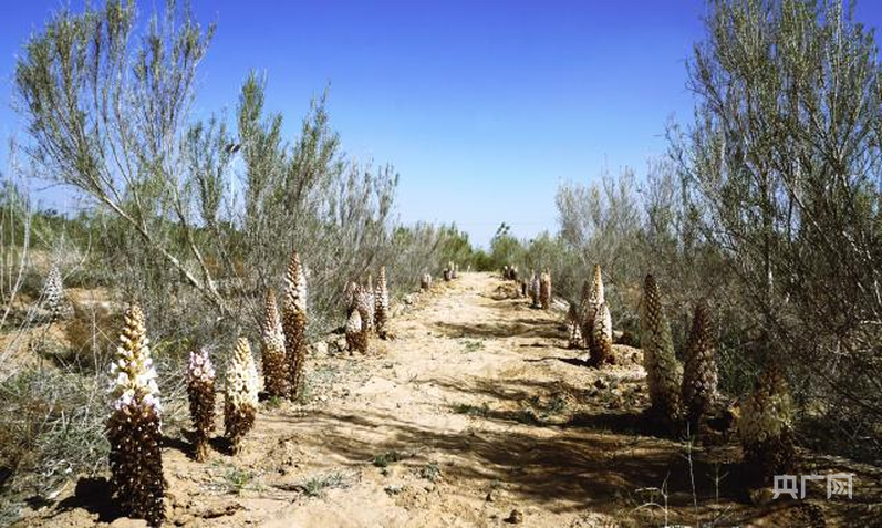 沙地间种植的肉苁蓉(央广网发 王禹 摄)