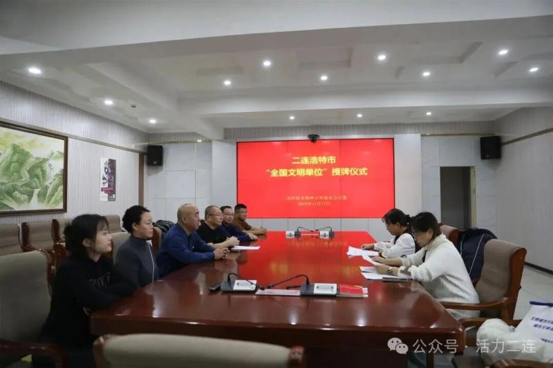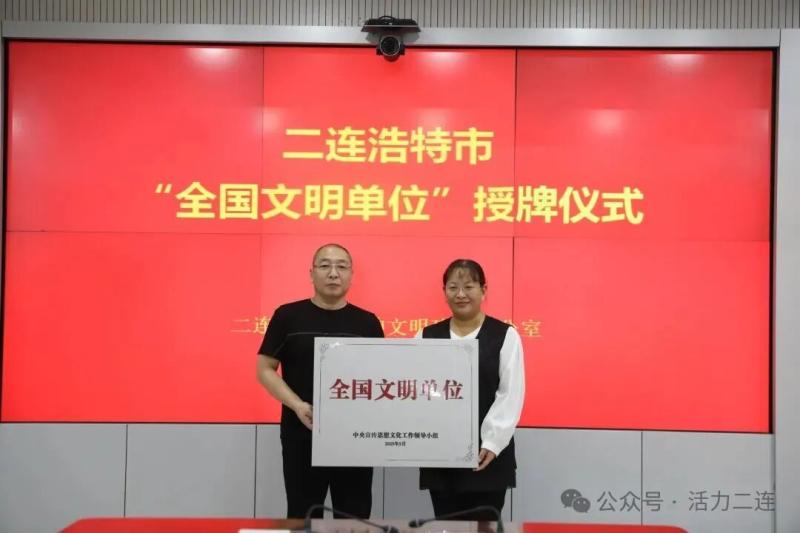 11月17日,二连浩特市举行全国文明单位、文明家庭授牌仪式,为荣获第七届“全国文明单位”的二连浩特市气象局和“全国文明家庭”称号的吴冬梅家庭颁发荣誉牌匾。