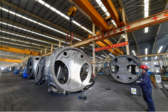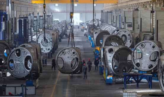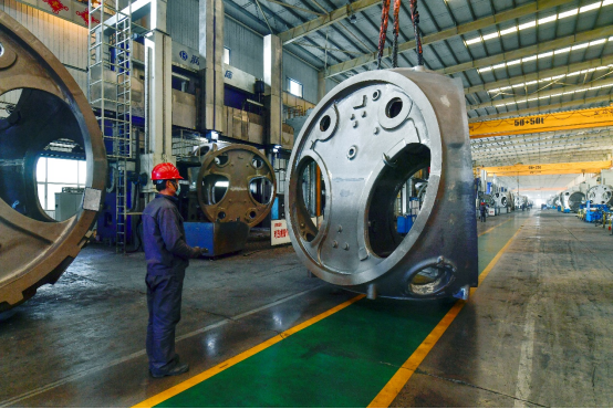 风电轮毂正在加工。