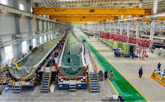 涂装车间的风电轮毂。
