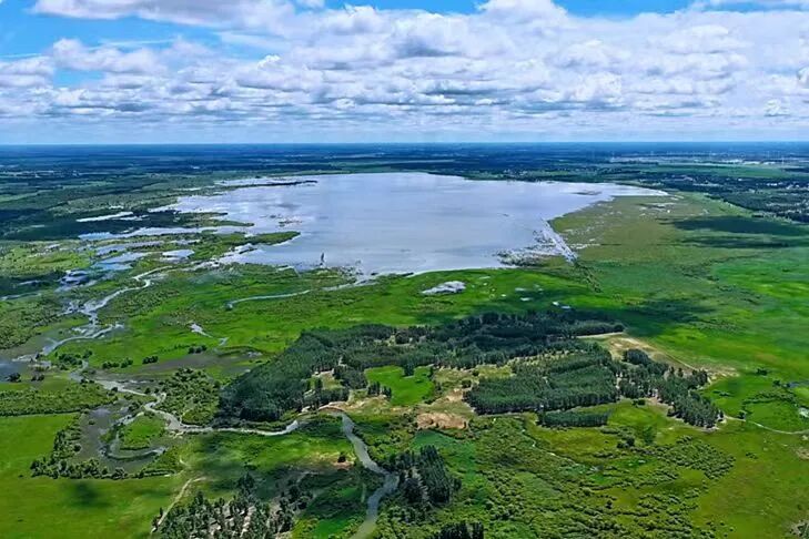 (通过湿地修复、生态治理,科左后旗辉图阿巴海嘎查的湿地成为候鸟迁徙的“中转站”。张启民 摄)