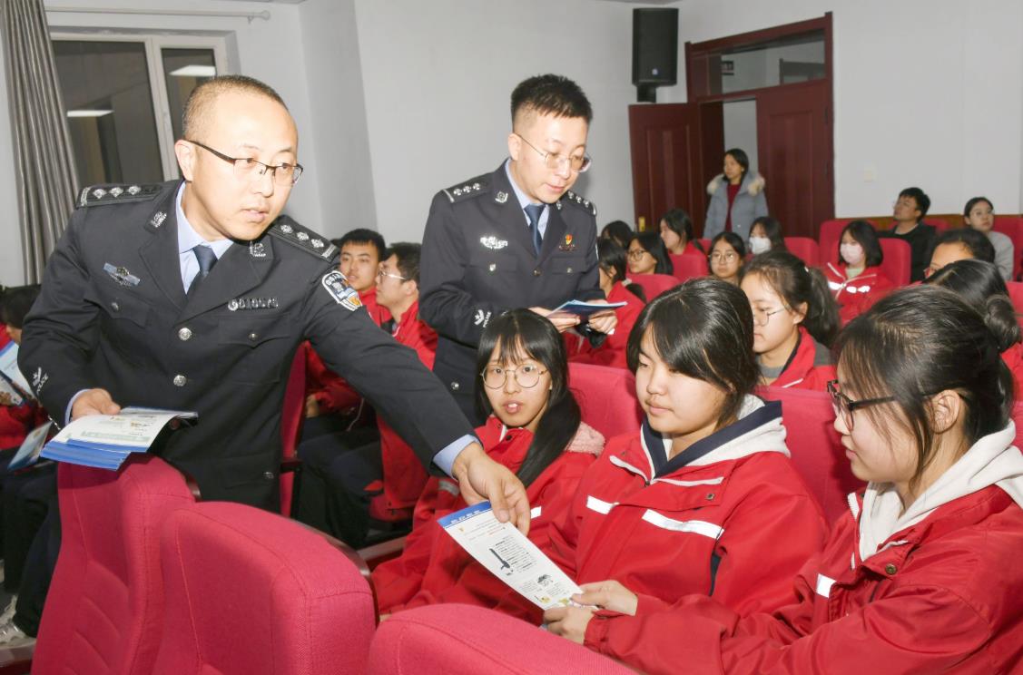 紧接着,民警围绕防范校园欺凌开展专题授课,引导学生们树立正确的交往观念,呼吁同学们互帮互助、友善相处,共同构建和谐友爱的安全校园。活动尾声,民警还为学生们发放印有反诈知识和报警热线的宣传手册,使其在活动结束后持续守护青少年健康成长。