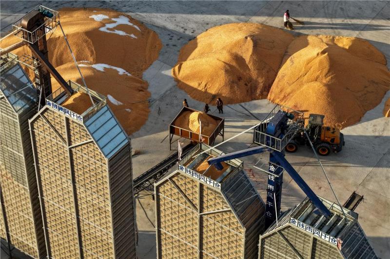 11月19日,兴安盟扎赉特旗好力保镇申丰农牧合作社,农民正将玉米收储到风干储粮仓内。 截至当日,兴安盟秋粮收获工作已全面结束,粮食总收获面积达1705.39万亩,收割进度较去年提速0.74个百分点。