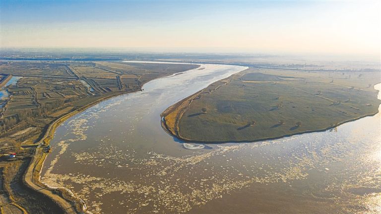 11月21日,黄河托克托县柳林滩村段景象。记者从呼和浩特市托克托县水务局获悉,11月20日8时,黄河托克托县段正式出现流冰花现象,冰花密度约为20%,较2024年提前7天进入凌汛期,目前凌情发展平稳。草原云·内蒙古新闻网记者 郑学良 摄