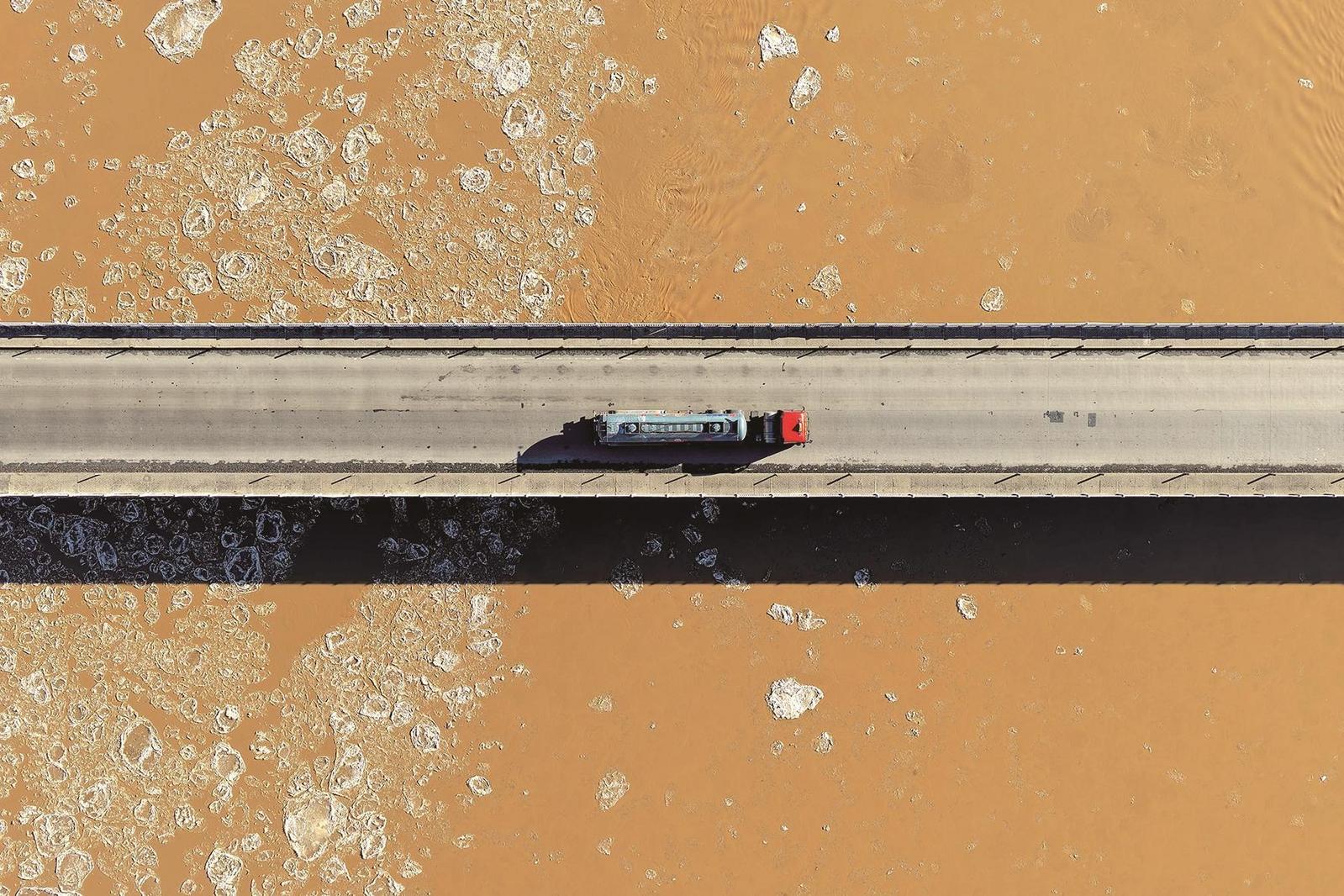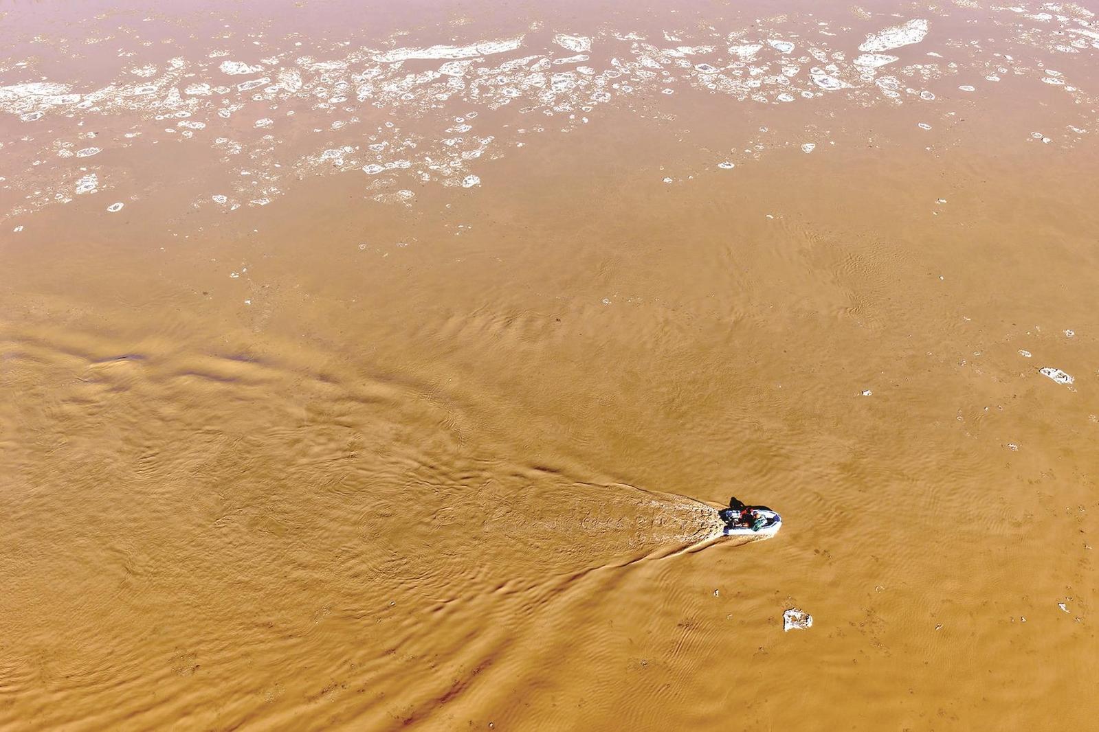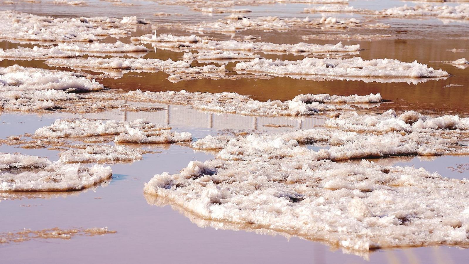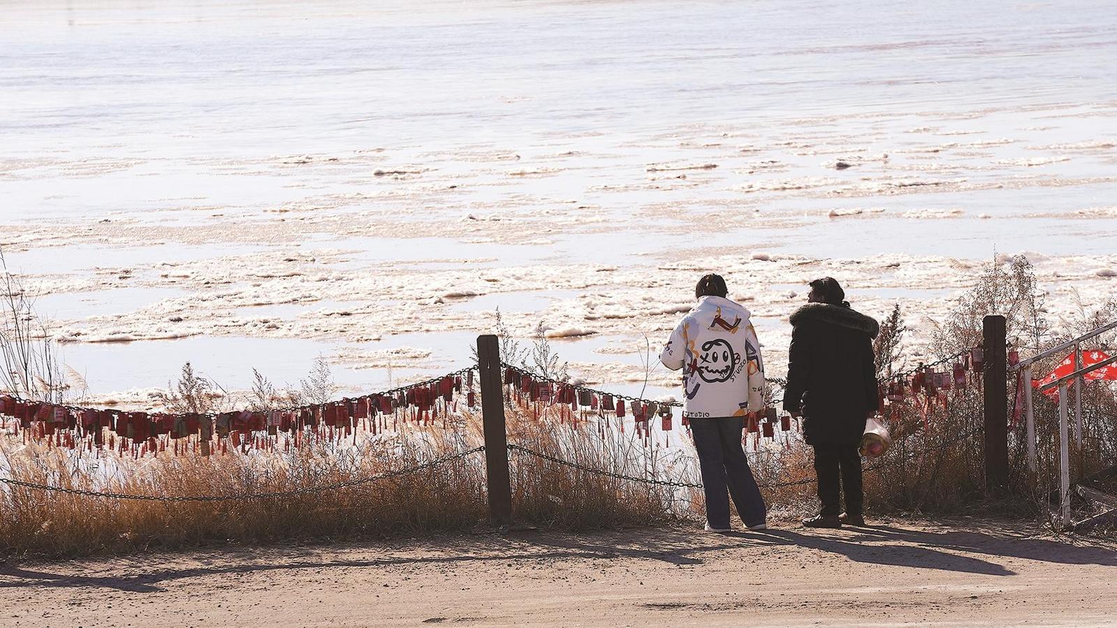 航拍镜头下,宽阔的河面上,灵动的碎冰与硕大的冰片奔涌而来,冰面在阳光下耀眼而清透。风浪起处,冰块随波轻漾又互相碰撞,时而相拥前行,时而慢慢分开。近岸处的冰凌有的如舒展的花瓣,有的似小巧的冰船,还有的层层堆叠如凝固的浪花,各自定格下河水奔涌的瞬间。寒雾氤氲中,河水裹挟着大片冰凌无声奔流,这一幅清寂而灵动的冬日画卷既有北方的苍劲辽阔,又藏着不为人知的温柔诗意。闻讯而来的市民游客驻足岸边,或举手机定格这份限定美景,或静静欣赏冰流涌动的雅韵。