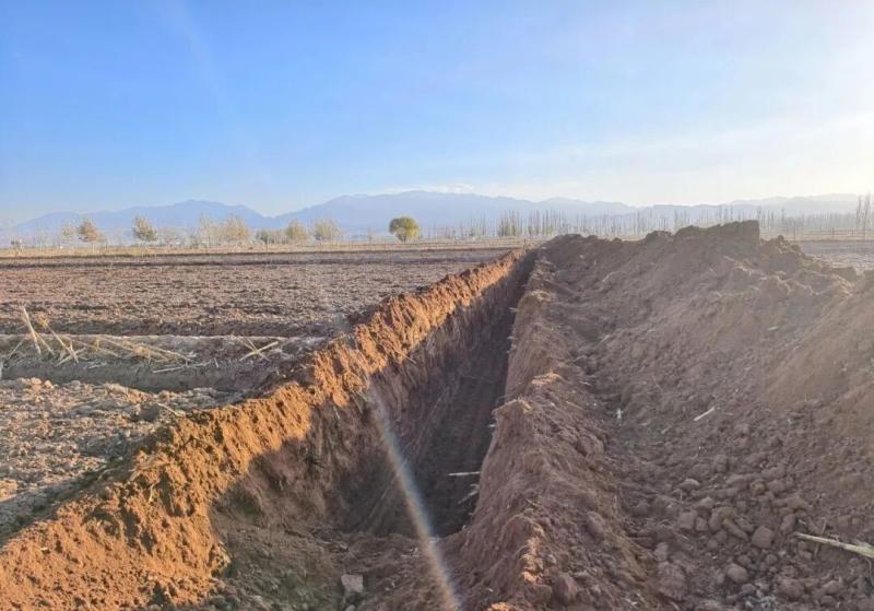 在阿拉善左旗,2025年高标准农田建设项目正稳步推进,计划新建高标准农田3.22万亩,总投资达9759.18万元。位于巴润别立镇白石头嘎查的项目建设现场,中铁一局承建的片区正有序施工,挖掘机在田间进行灌溉工程管线沟槽开挖作业,机械臂灵活运转间,一条深1.6米的沟渠逐渐成型,为后续灌溉管线铺设、农田水利设施完善打好基础。