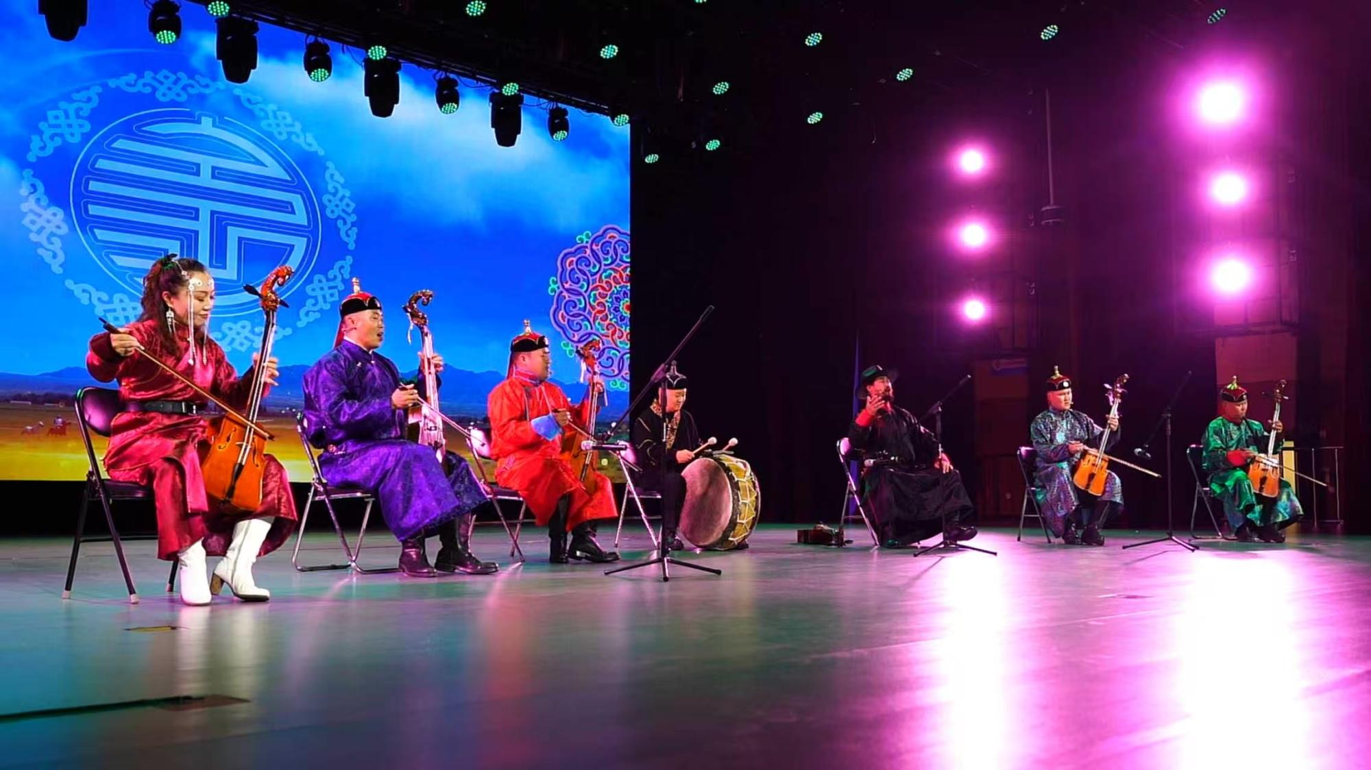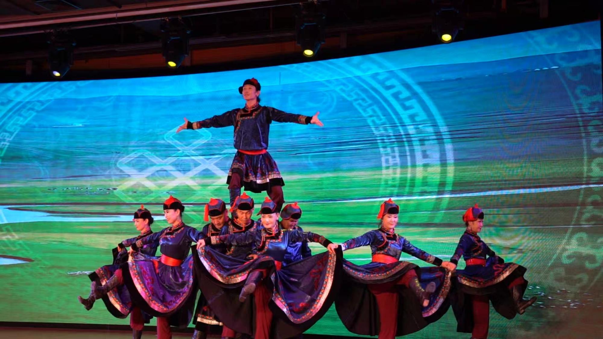让内蒙古文化在当代叙事中焕发生机和力量。原创舞蹈《石榴情》中,演员们身着民族服饰,将手中的红绸舞成了一朵朵石榴花,时而绽放,时而紧紧靠在一起,描绘了56个民族团结在一起,像石榴籽一样紧紧抱在一起,共同发展奋斗的动人故事,将“中华民族一家亲”的深厚情谊展现得淋漓尽致。曾获中国舞蹈最高奖“荷花奖”,被授予民族民间舞大赛十佳作品荣誉称号的《巴林德布斯乐》惊艳亮相,演员们时而纵身跳跃,时而蹁跹旋转,时而韵律踏响脚下的舞台,以优美潇洒、气势豪迈的蒙古族踏舞,赢得了台下观众雷鸣般的喝彩声和掌声。非遗项目顶碗舞《圆之梦》则创新舞台动作和音乐形式,以优雅灵动舞姿,展现了内蒙古在雄浑辽阔的气概之外,另一番柔美秀丽的民族风情。非遗乐器瓦尔卡筚篥尔一曲《画你》悠扬动听,婉转入耳,为现代歌曲注入跨越千年的深情,通过古老与现代的结合,让非遗乐器焕发出新生的力量。乌兰牧骑来自内蒙古大地,文艺创作根植中华文化,用传统文化在现代演出中实现创新表达,书写非遗文化“活态传承”。