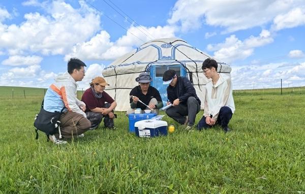马腾带领团队在内蒙古锡林郭勒大草原采集自然发酵乳。图片来源:中国青年报