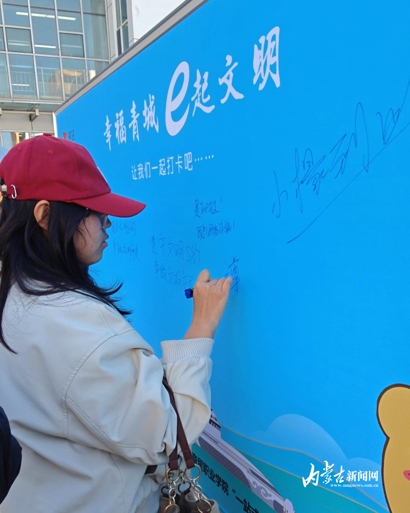 本网讯(草原云·内蒙古新闻网记者 刘 惠) 11月25日,由呼和浩特市委宣传部、市文明办主办的“幸福青城 E起文明”呼和浩特市民文明行为打卡活动在内蒙古商贸职业学院举行。活动通过趣味打卡、互动体验等方式,引导学生自觉践行文明言行,涵养文明素养,让文明成为日常习惯与自觉追求。