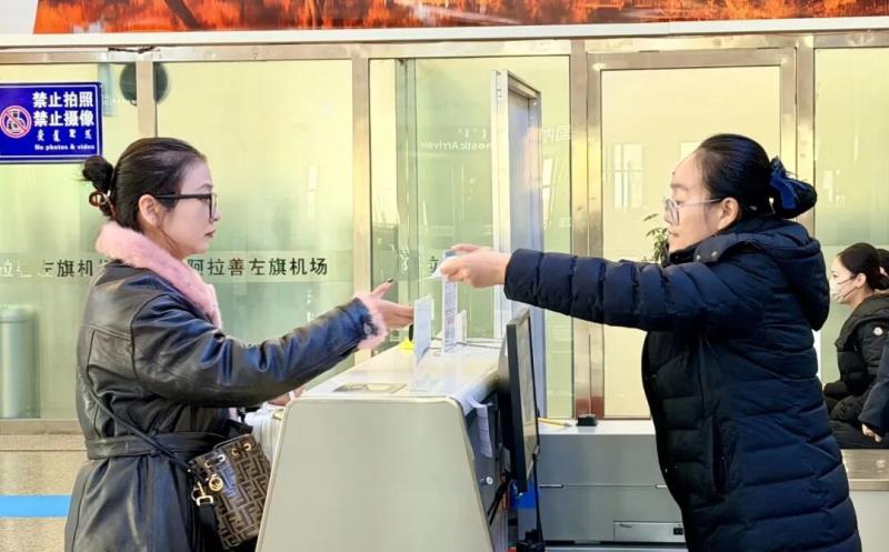 近日,记者走进阿拉善左旗机场航站楼,值机柜台前旅客有序排队,现场一派繁忙的出行景象。据悉,机场旅客吞吐量较2024年提前突破10万人次大关。