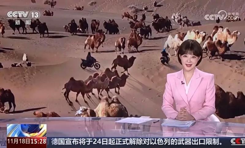 央视新闻频道作为全国最具影响力的新闻传播平台,时段资源稀缺、选题标准严苛,单条报道时长通常以秒计。11月18日至20日,央视新闻频道《新闻直播间》连续三天播出12条阿拉善骆驼转场短片,累计时长35分钟,相当于在黄金新闻时段为阿拉善开辟了专属传播窗口,这在地方文旅及区域发展主题报道中极为罕见。