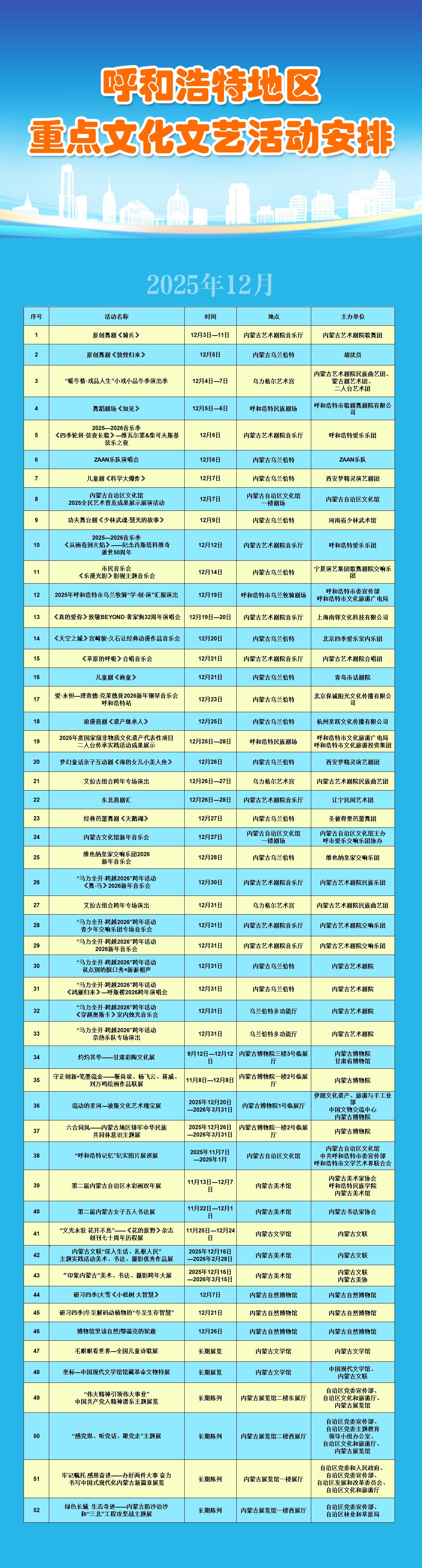 呼和浩特地区12月重点文化文艺活动安排看过来!