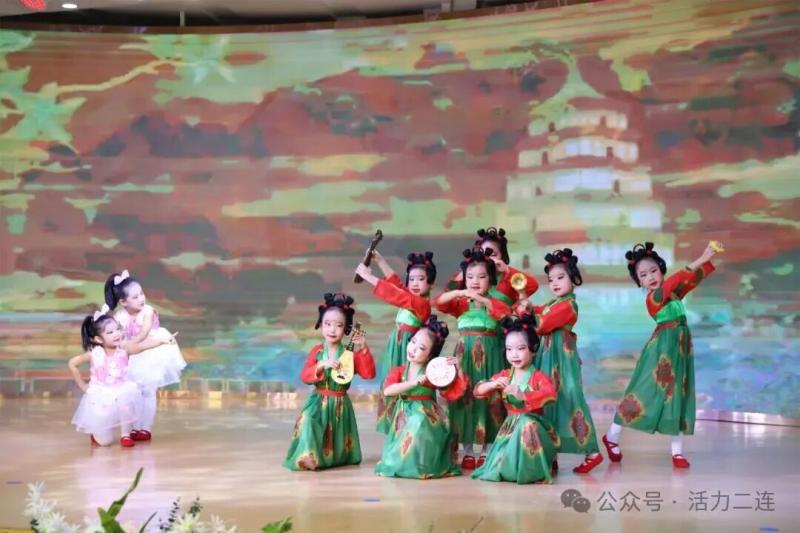 签约前,幼儿们身着靓丽服饰,带着满满的创意与活力,带来一场以“博物馆之夜”为主题的精彩演出。小小的身影在舞台上快活灵动,时而化身文物守护者讲述历史故事,时而用优美的舞姿再现文化印记,将童真童趣与民族文化巧妙融合。歌曲《我们是追梦人》歌声真挚、情感饱满,唱出了幼教工作者对教育事业的赤诚与坚守。歌舞交融间,为这场教育之约铺垫了温暖的底色。