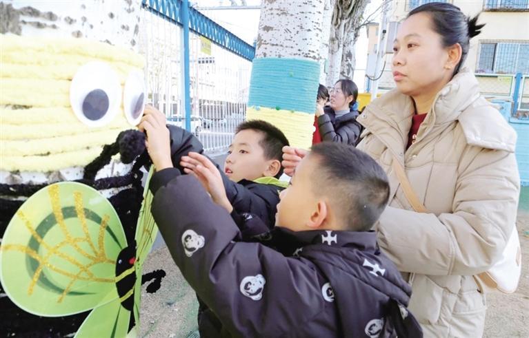 在家长与学生的相互配合下,原本光秃秃的树干陆续穿上了厚实的“防寒铠甲”。各家庭小组之间既比拼效率与质量,又相互分享经验技巧,洋溢着团结协作、乐于奉献的良好氛围。当最后一棵小树完成防寒包裹时,学生看着自己的劳动成果,脸上露出了自豪而满足的笑容。