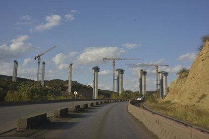 “一桥飞架南北,天堑变通途。”施工现场,准格尔旗高等级公路投资有限责任公司党群工作部长万惠隆指着高速路中一段段跨越群山的桥梁和桥下最高达64米的高墩,吟诵起毛泽东在《水调歌头·游泳》中的诗句。