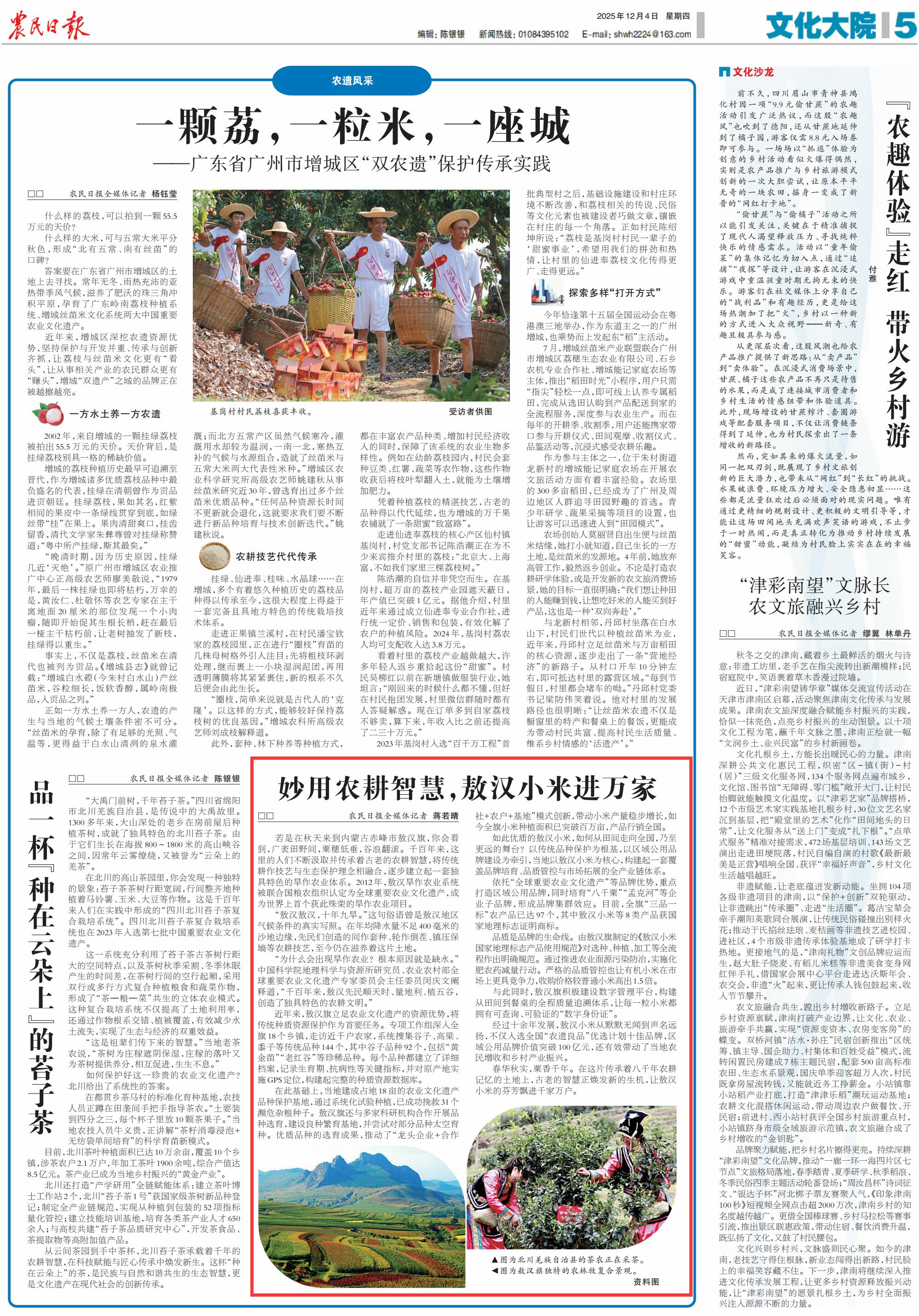 2025年12月4日《农民日报》第5版刊发了《妙用农耕智慧,敖汉小米进万家》的文章,报道了内蒙古赤峰市敖汉旗立足农业文化遗产的资源优势,将传统种质资源保护作为首要任务。经过十余年发展,敖汉小米从默默无闻到声名远扬,不仅入选全国“农遗良品”优选计划十佳品牌,区域公用品牌价值突破100亿元,还有效带动了当地农民增收和乡村产业振兴。