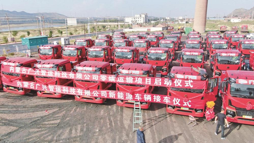 “绿色化煤炭运输零碳道路试点项目”由市交通运输局和内蒙古广兴智运科技有限公司共同实施,计划在海南区内蒙古广聚新材料有限公司至阿拉善盟富泉焦化厂、至甘其毛都口岸,设置2条零碳运输线路。实施期内拟完成6个充换电站建设,投入120余辆新能源重型卡车组建零碳车队。“目前,我们正在按计划推进项目,购置了一批新能源重卡车辆运力。阿拉善盟富泉焦化厂充换电站基本建设完成,等待验收。我们会根据计划持续推进项目,推动物流行业降碳增效、高质量发展。”内蒙古广兴智运科技有限公司副总经理黄立钢说。