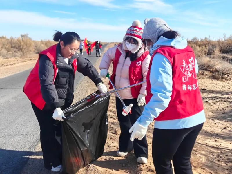 在阿拉善高新区巴音敖包嘎查科泊尔地区,“冬日暖沙海 齐心护文脉”环保志愿行动同步展开,各志愿服务队、部分单位志愿者代表及西部计划志愿者深入沙漠边缘区域,采取“集中清洁+流动巡查”的模式,捡拾垃圾、分类清运,并在沿途宣传环保理念,以实际行动守护生态文明;