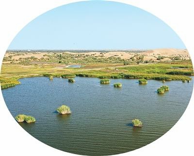 位于库布其沙漠里的七星湖景区。