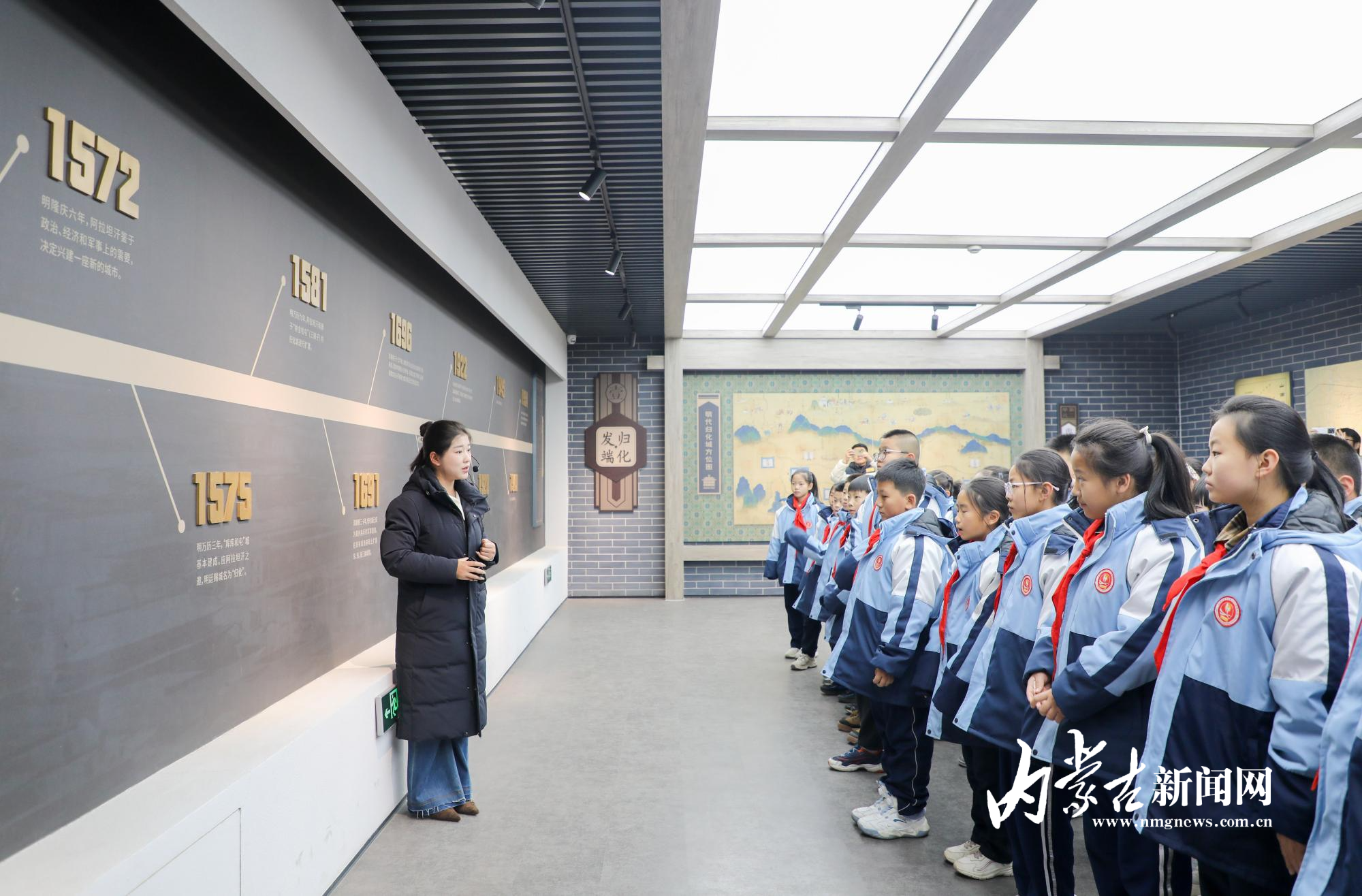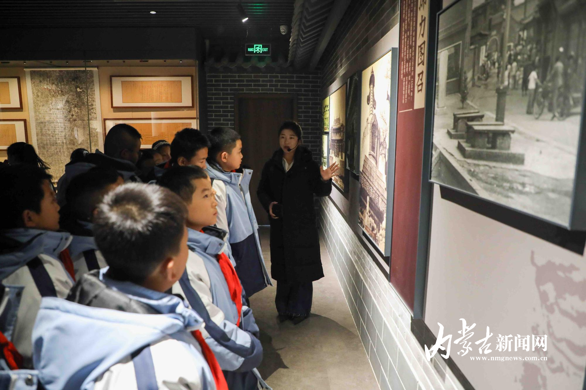 12月10日,呼和浩特市玉泉区恒昌店巷小学五里营校区学生走进归化城展示馆,开展沉浸式半日研学活动。孩子们认真聆听古城由来,凝视老照片,感受家乡深厚底蕴。据了解,该校将本土历史文化资源与思政教育相结合,让课堂走出课本、走进生活,既拓宽学生视野,又厚植了家国情怀。摄影/草原云·内蒙古新闻网首席记者 牛天甲