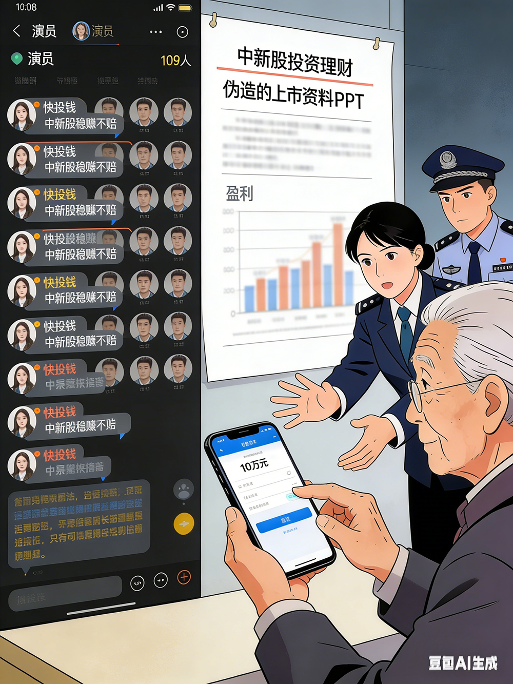 109 人的群,108 个托。一份伪造上市公司资料的 PPT,一个满是“演员”的聊天群,差点骗走老人的 10 万元积蓄。日前,上海静安警方依托高效的警银联动机制,在转账的最后关头火速拦截,成功揭穿了这起名为“中新股”的投资理财骗局。