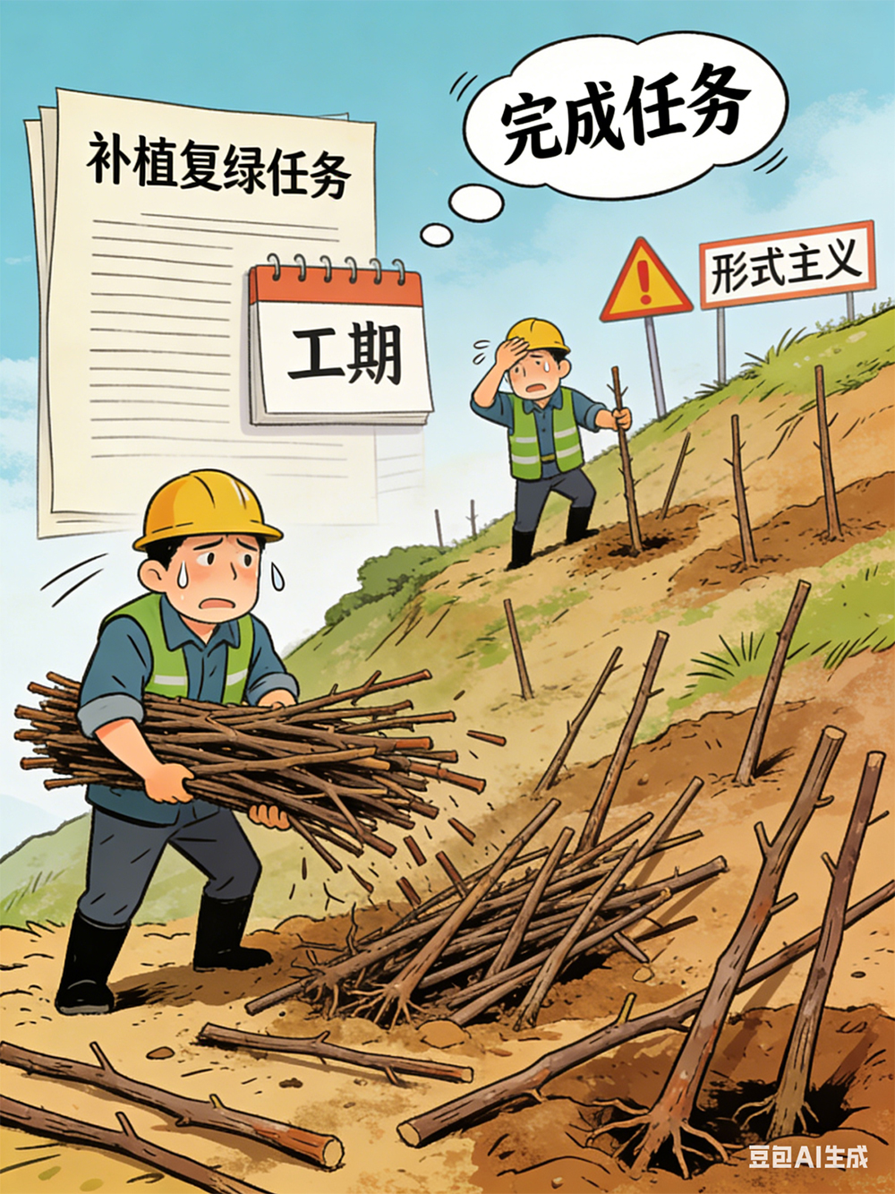 生态修复岂容“插枝充数”?让敷衍者付出代价、让监管长出牙齿,才能确保每一次复绿都落到实处,让受损的林地真正重焕生机。