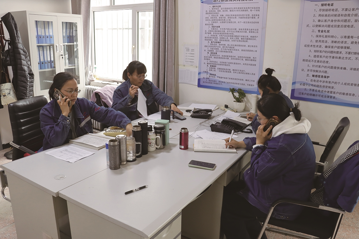 “喂,是温暖工程专线吗?我家客厅温度只有16度,能帮忙看看吗?”“您别急,麻烦提供一下住址,我们马上安排工作人员上门检修。”这样的对话,每天都在赤峰大板热电有限公司客服部上演。为快速响应群众供热诉求,巴林右旗专门设立“温暖工程”专线,由住建局、街道、社区、供热公司、物业、小区委员会等组成专班,并将专线办公地点设在热电公司客服部,实行24小时值班制,群众反映的问题分类登记后,由客服部第一时间派单至维修班组,维修人员24小时上门处置,处置完成后进行不定期回访。实现“诉求接件、派单、处置、反馈”的“一站式”服务,确保“事事有回音、件件有着落”。