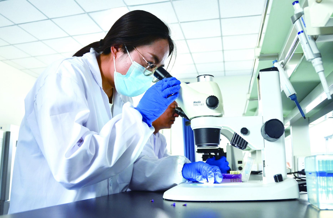 乌兰察布市农林科学研究院技术人员观察苜蓿种子。 张可心 摄