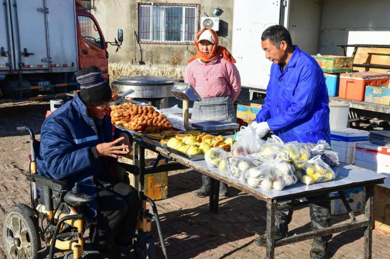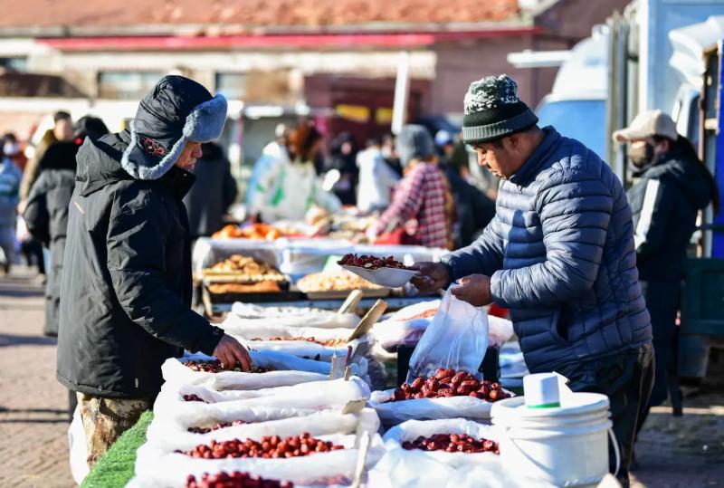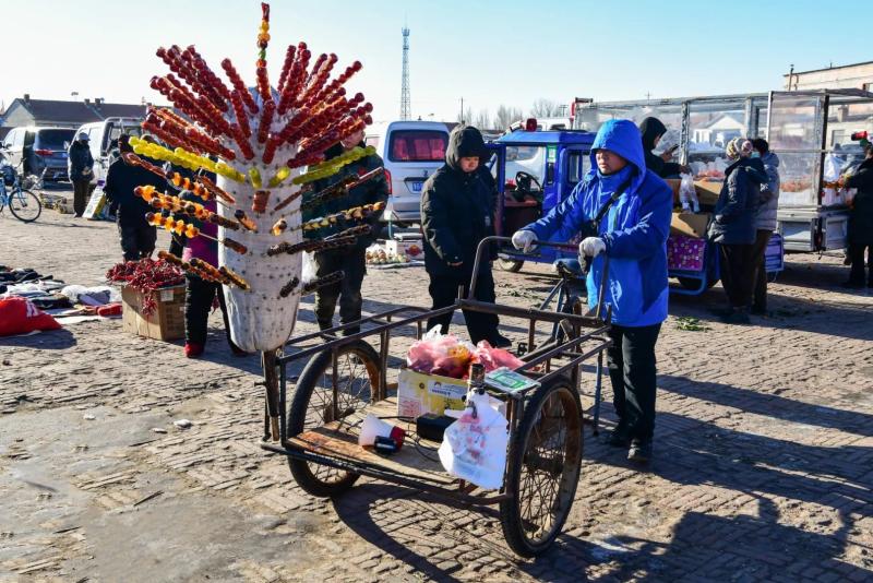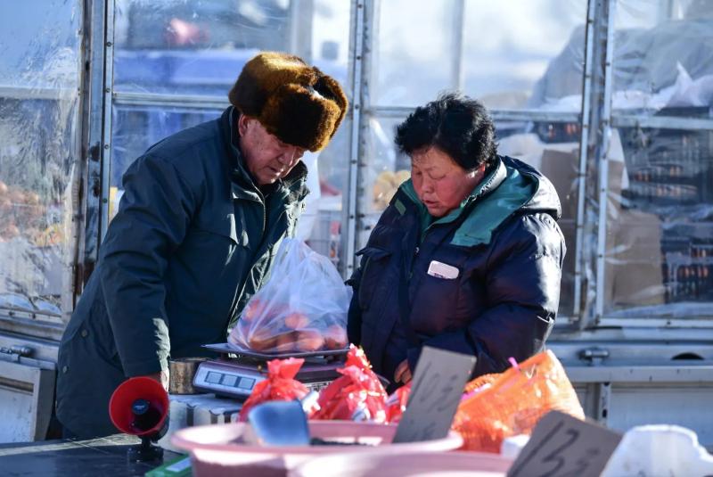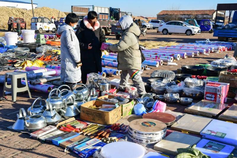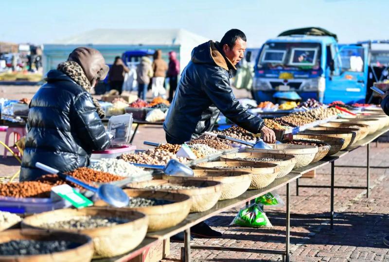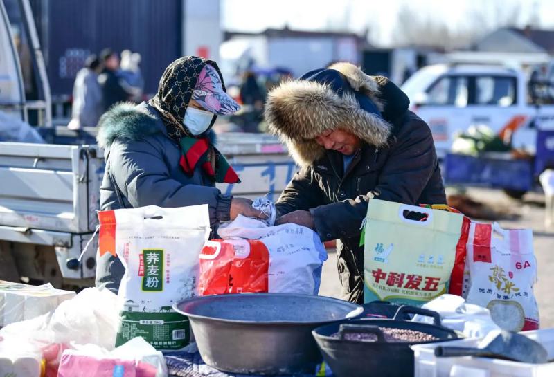 肉香果香裹满烟火气。冬日铺展的科尔沁区钱家店镇大集,早己被叫卖声浸得暖热。鲜果摊前橙黄的橘子堆成小山,干果摊上的花生、葡萄干、大杏仁等焦香漫开,农副产品区,农户筐里的萝卜干、大葱、地瓜等正迎接着顾客的选购,鞋帽摊上顾客拿着一双鞋与摊主讨价还价,百货摊上的暖壶、棉手套、针线摆放齐整……从自家腌渍的酱菜到刚卸车的水果,百元就能拎回半袋的乡味。风裹着果香肉香粮香,把乡野的热闹揉成了最暖的冬日烟火。(张启民)