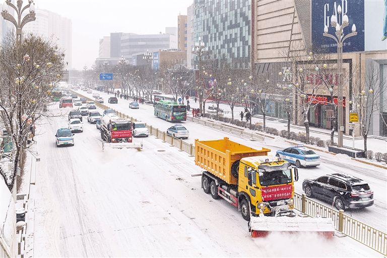 12月12日,在呼和浩特市中山西路,环卫部门清雪车辆正在作业。当日,呼和浩特迎来今冬首场大雪,全市共出动770台除雪车辆以及3175台机具开展清雪工作,全力保障道路交通安全。草原云·正北方网记者 怀特乌勒斯 摄