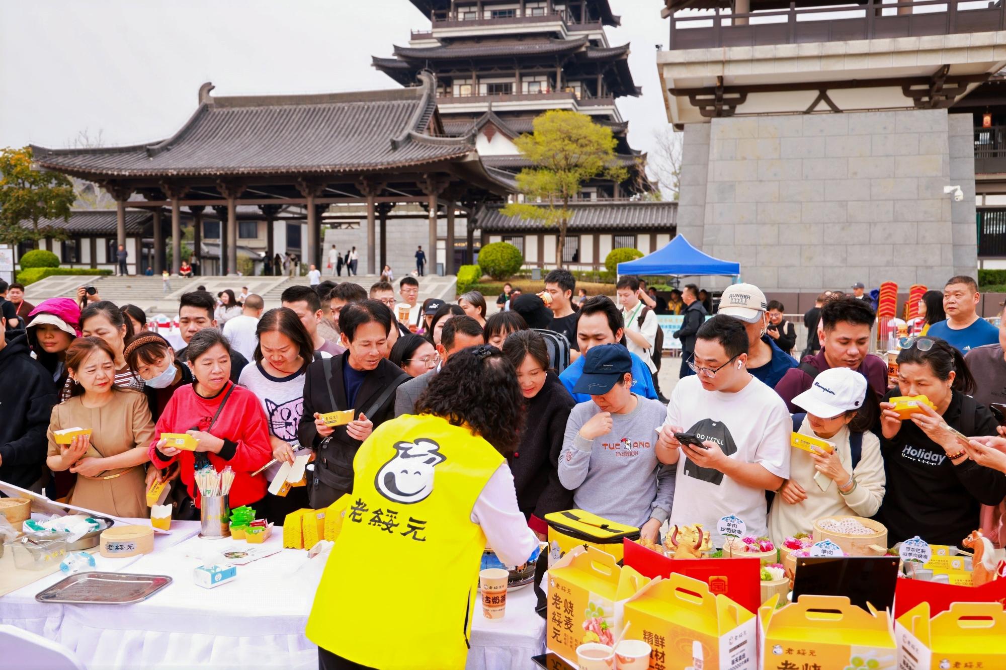 广州市民排队品尝青城特色烧麦。