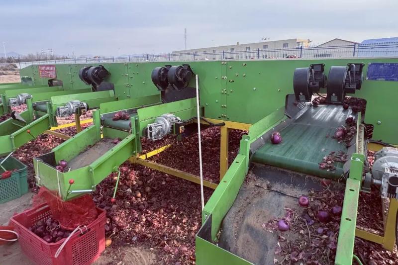 近日,记者走进内蒙古谷满田农产品有限公司生产厂区看到,工人们正熟练地将新鲜洋葱放到分选机上,大小均匀的洋葱经分拣、打包后,迅速被转运到邮政物流车上,即将发往全国各地。