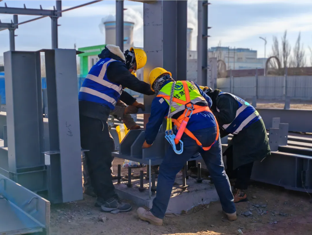 冬至将至,寒意渐浓,位于乌达区的乌海市蒙新能源有限公司远景乌海智慧储能装配基地项目抢时争速,施工人员正抢抓年末最后施工期,紧锣密鼓推进钢结构施工。