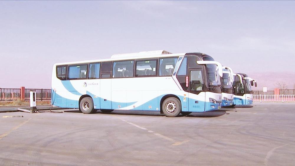 乌海海易通银隆新能源汽车有限公司厂区充电站,不少新能源汽车在这里充电。 (肖传军 摄)