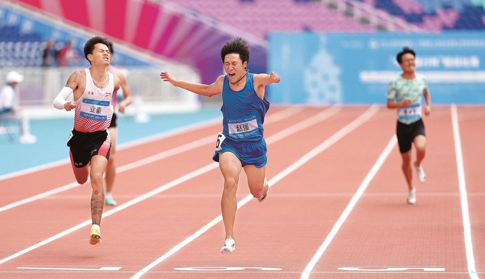 田径运动员赵强(中)在比赛中。图片由市残联提供