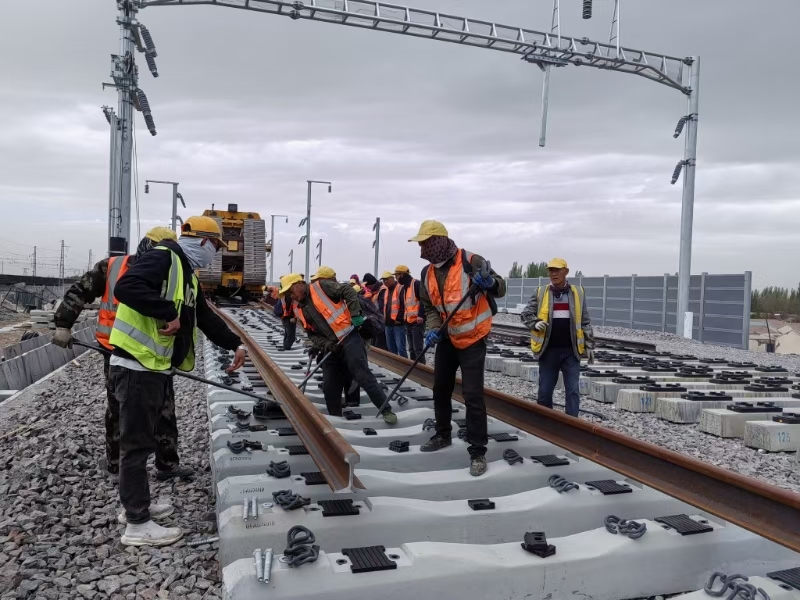 5月1日,包银高铁乌海段铺轨作业中。(资料图)