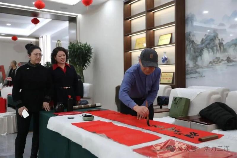 交流声未落,文艺演出又将气氛推向高潮。歌曲、舞蹈、诗朗诵、互动游戏精彩纷呈,现场欢声不绝。书法爱好者们挥毫泼墨,一幅幅雄健洒脱的春联跃然纸上,一句句真挚温暖的新春祝福传递心间。