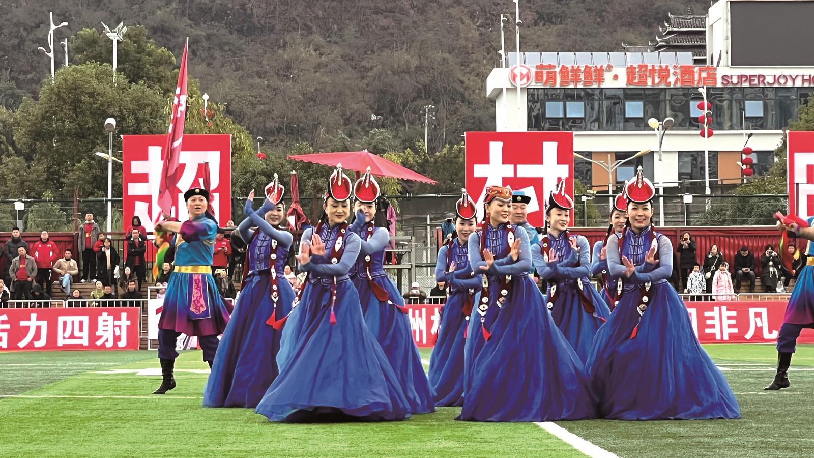 日前,2026年贵州村超开幕式暨“村超村晚”拉开帷幕,赤峰足球队作为内蒙古蒙超唯一出战队伍,跨越千里奔赴贵州。同行的“红色文艺轻骑兵”——赤峰市艺术剧院(赤峰市乌兰牧骑)献上全新编排的节目,让草原文化与苗山侗水完成了一场跨越千里的深情对话。 (王欣然 肖璐)