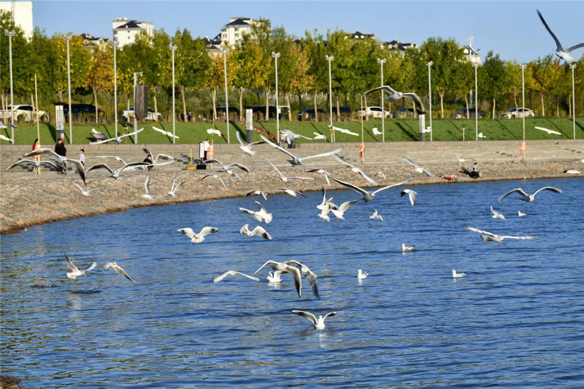 红嘴鸥盘旋在乌海湖畔。(资料图)