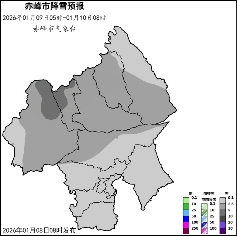 图1 1月9日赤峰市降雪预报图